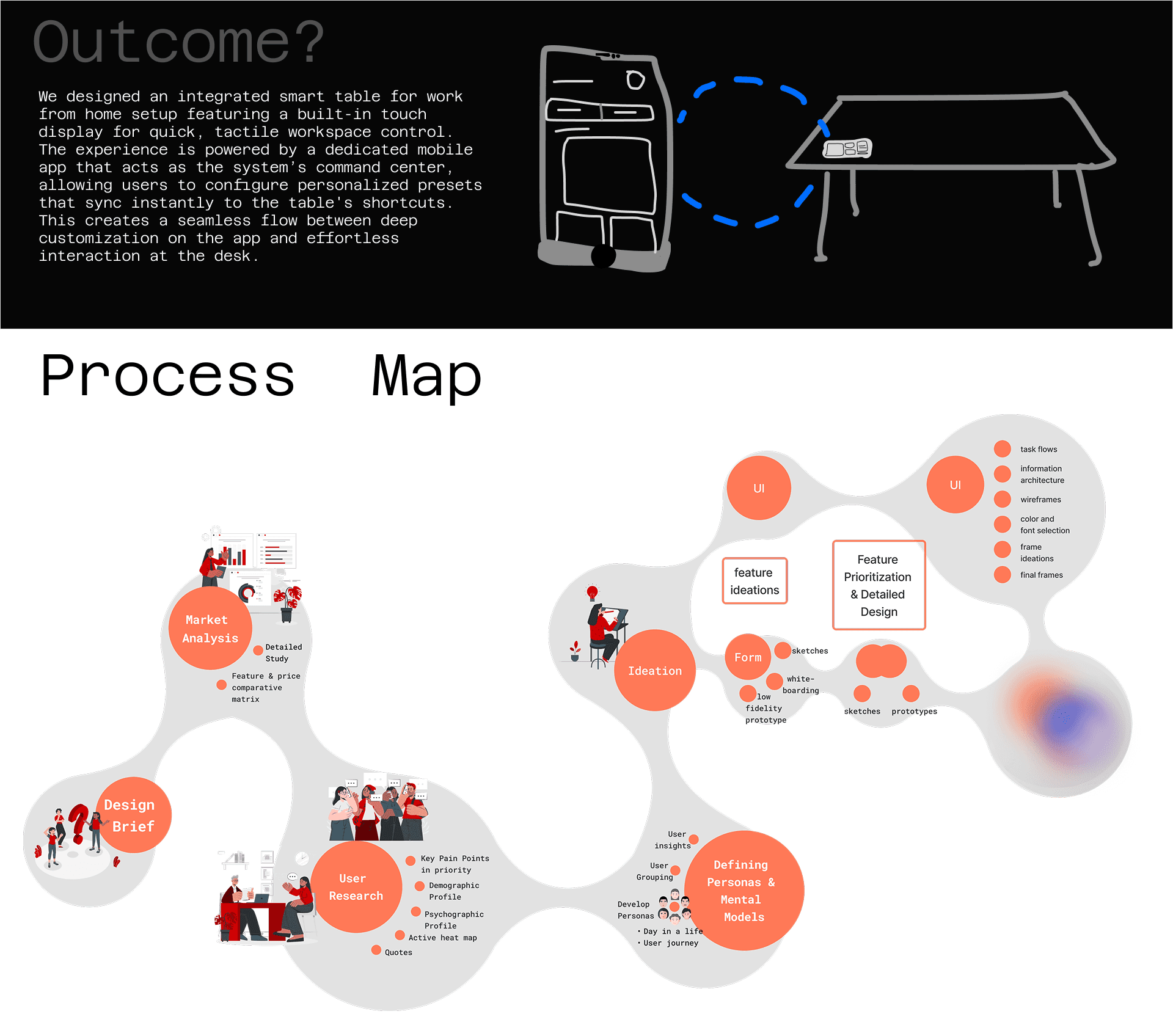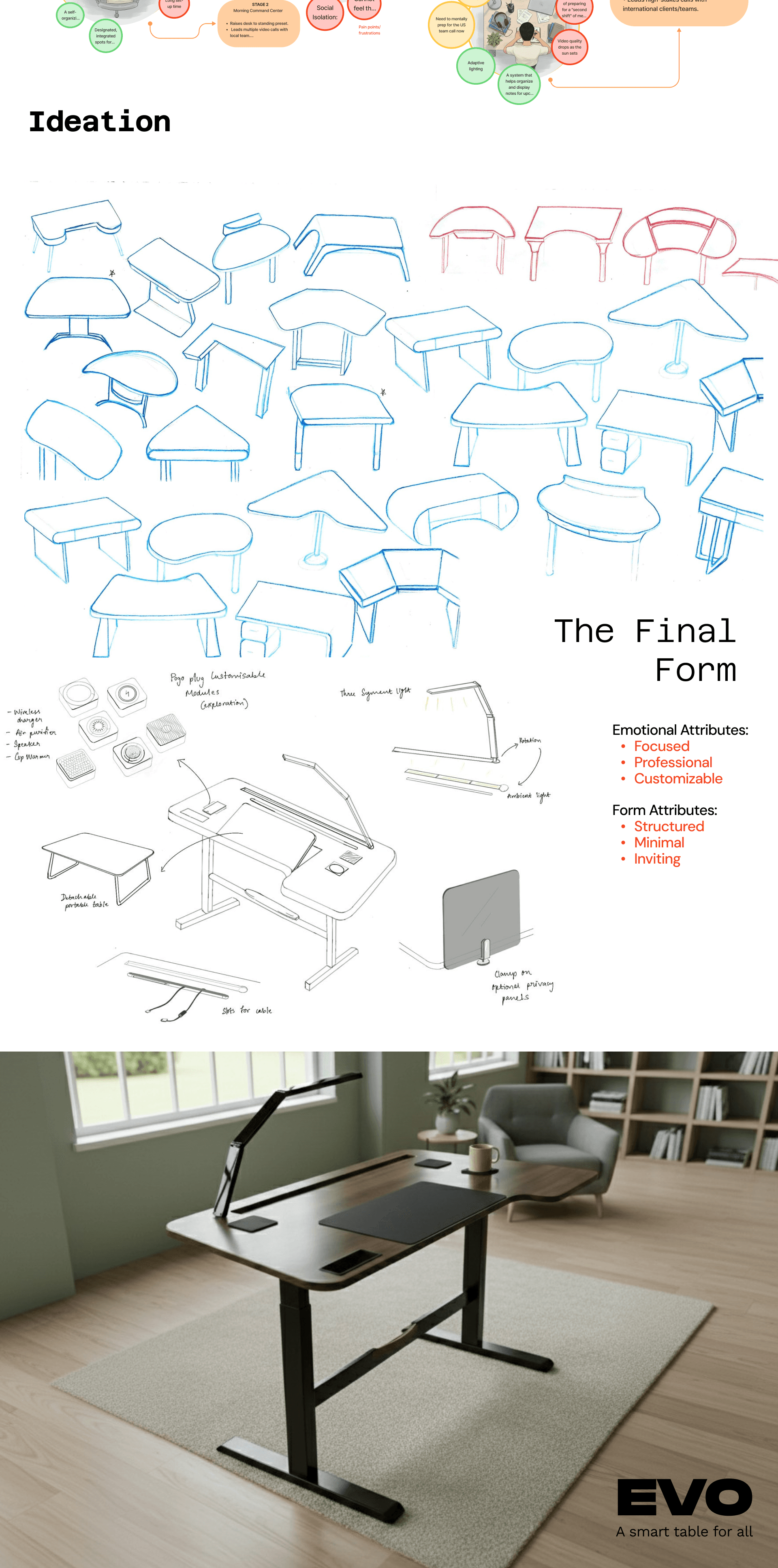 To design a smart work from home table that intuitively adapts to users’ physical needs, daily routines, and digital workflows blending hardware, software, and behavior design into one seamless experience.
